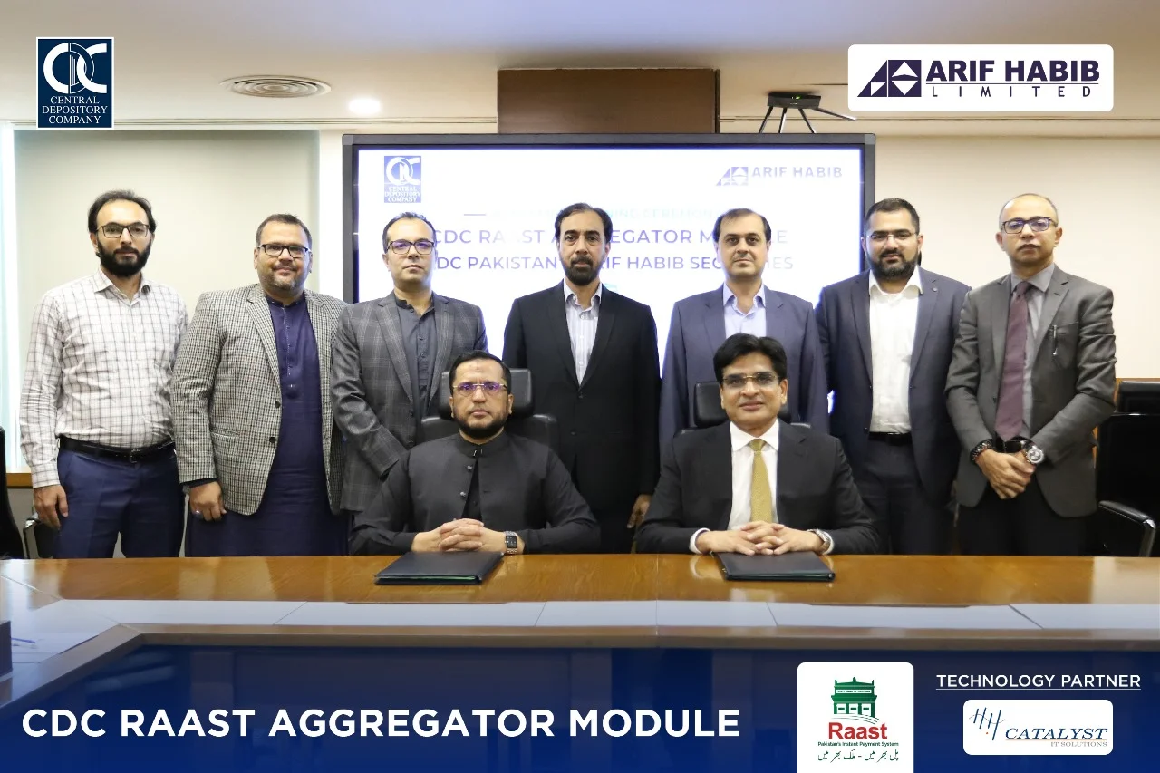 The Central Depository Company of Pakistan (CDC) has onboarded Arif Habib Limited to its RAAST Aggregator Platform, marking a significant advancement in enabling secure, instant fund transfers for investors. This strategic integration, supported by Catalyst IT Solutions, furthers CDC’s mission to drive digitalization, transparency, and operational efficiency across Pakistan’s capital market.